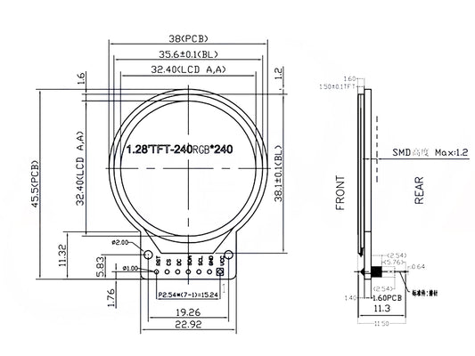 Pantalla TFT Circular 1.24 Pulgadas RGB 240x240