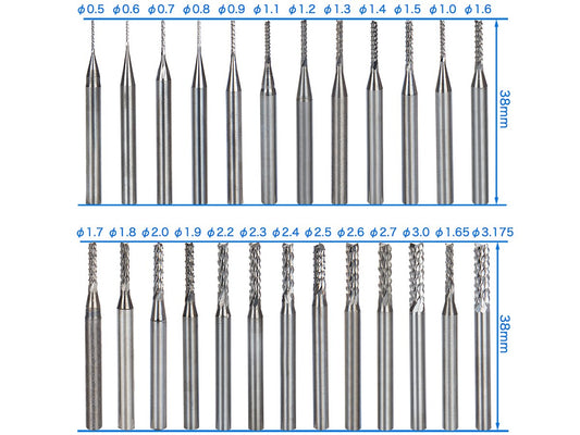 Kit 25 Piezas Puntas Fresas CNC 0.5mm-3.175mm