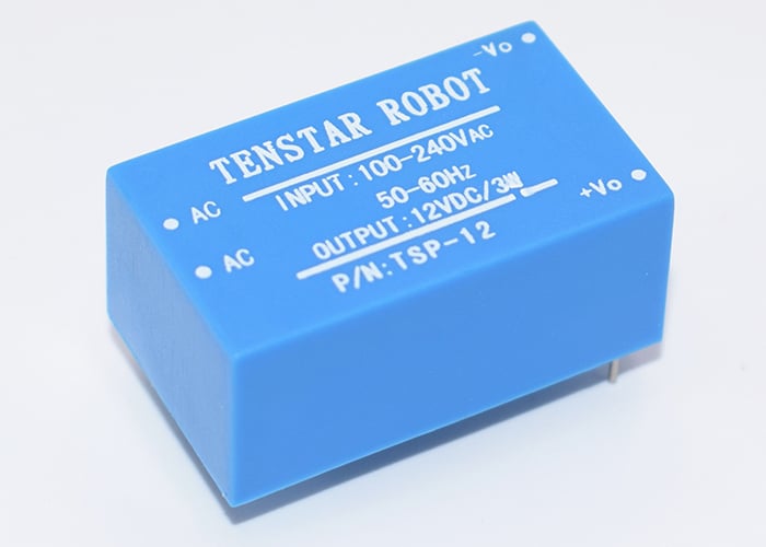 Práctico módulo que convierte de 100-240v AC a 12v DC. Ideal para proyectos pequeños y fáciles de implementar.