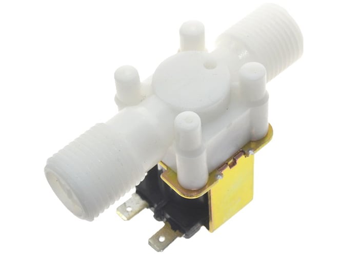 Añade esta válvula de líquido a tus proyectos de robótica de jardinería, peceras o en cualquier otra aplicación donde quieras controla el flujo de liquido. Esta válvula es normalmente cerrada. Cuando se aplican 12v a las dos terminales de la válvula se abre y permite el flujo de líquido. El líquido puede fluir sólo en una dirección.